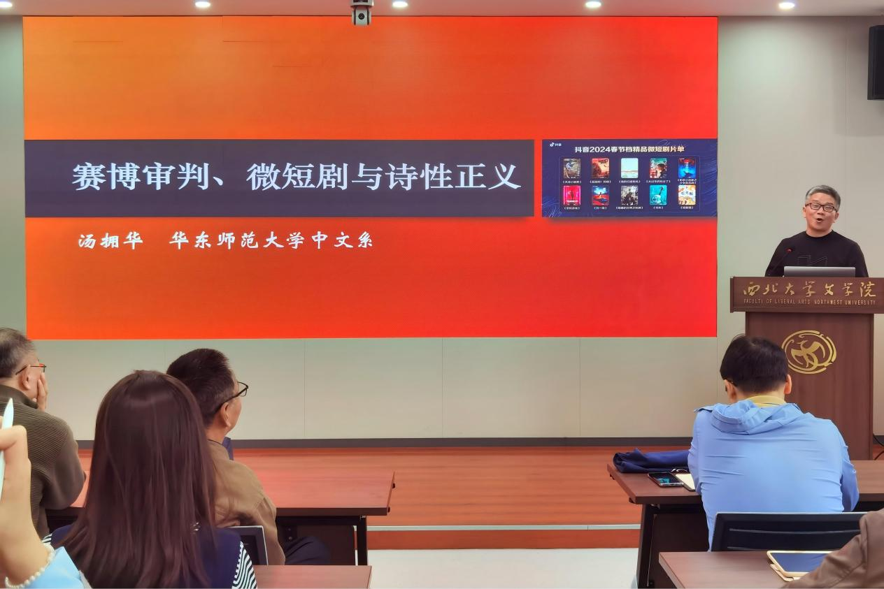 9月27日上午,华东师范大学中文系教授、文艺学博士生导师汤拥华教授做客我校,以“赛博审判、微短剧与诗性正义”为题展开探讨。讲座由姜彩燕老师主持,雷鸣老师、高俊林老师、袁少冲老师、赵林老师、李斌老师、薛...