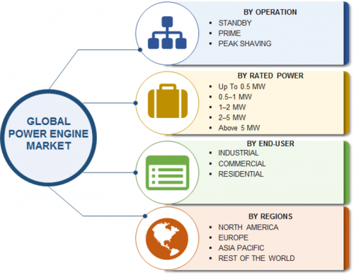 Global diesel power engine market has been segmented based on operation, rated power, end-user and region.