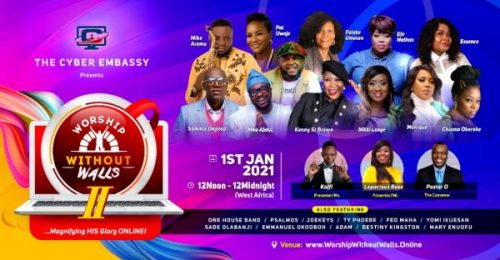 The Cyber Embassy, the world’s 1st, 100% Full-Fledged Internet church is set to Organize its second made-for-internet 12-Hour Gospel Concert, termed ‘Worship Without Walls II’ on January 1st, 2021.