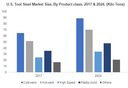 U.S. hot-work tool steel market growth will achieve gains of about 4.5% to 2024, significant economic development in the country owing to growth in the oil & gas industry has stimulated tool steel demand for forging applications.