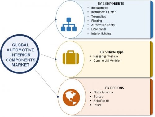 By Components market further segmented into infotainment, instrument cluster, telematics, flooring, automotive seats, door panel, interior lighting