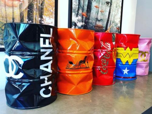 California artist Efi Mashiah has launched a new environmentally conscious collection of artworks made from recycled branded oil barrels to reflect the co-dependency between the fashion and art.
