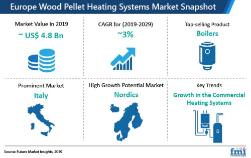 A new market research report by Future Market Insights on the wood pellet heating systems market includes Europe industry analysis 2014–2018 and opportunity assessment 2019–2029. The report investigates the wood pellet heating systems market and provides critical insights for the forecast period of 2019-2029. As per the findings of the report, the Europe wood pellet heating systems market is expected to experience substantial growth during the forecast period due to multiple driving factors, such as smart technologies & mobility heightening attractiveness of wood pellet heating systems over conventional ones and limited emission of air pollutants.