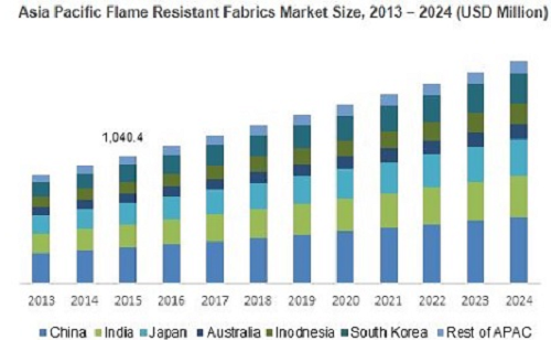 Asia Pacific Flame Resistant Fabrics Market region holds a potential industry share and is slated to surpass US$ 1.5 billion by 2024 as rising investments by end-user industry and strict government regulation for protecting employees driving for China, Japan and India market.
