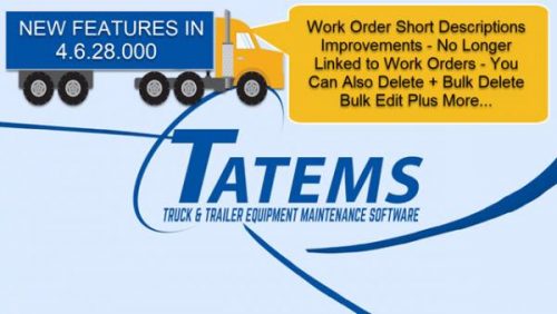 New release of TATEMS Fleet Maintenance Software helps work order creation related to short descriptions. Added ability to delete short descriptions in bulk without affecting work orders and more.