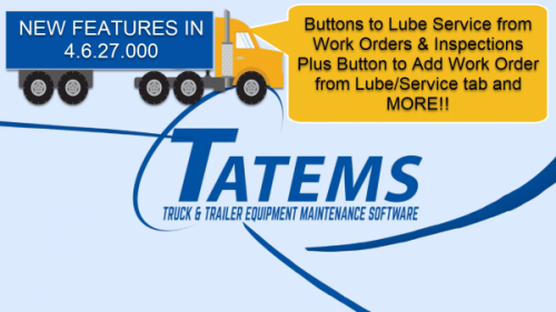 New release of TATEMS Fleet Maintenance Software introduces ability simplify and speed up the data entry of work orders, lube services (PMs) and 90 Day Inspections(BIT/DOT) for it’s users.