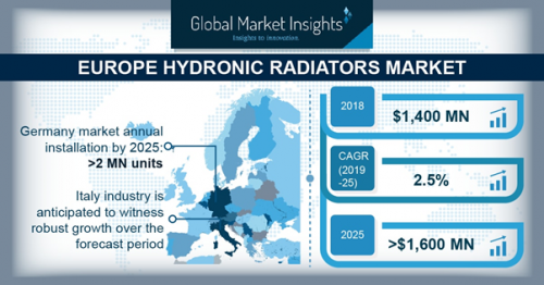 Italy hydronic radiators market is anticipating noticeable growth during 2019-2025 driven by ongoing growth in minimum efficiency standards coupled with favorable regulatory measures toward the adoption of sustainable systems.