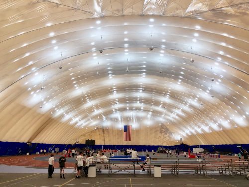 With its huge field area and 200-meter, 6-lane track, the 80,000 square-foot John Bennett Indoor Athletic Complex is designed to host many sporting events, including soccer, basketball, and track and field events. Though lighting coverage and efficiency are never a concern on sunny days because of the dome’s translucent envelope that allows natural light during the day, nighttime athletic events required a much-needed lighting transformation.