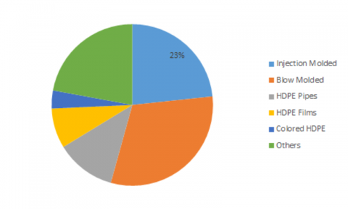 By product type, the global high-density polyethylene market has been segmented into injection molded HDPE, blow molded HDPE, colored HDPE, HDPE pipes, HDPE films, and others.
