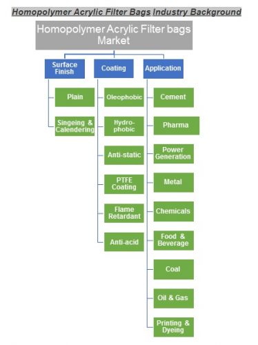 Homopolymer acrylic filter bags aids in capturing fine particles in industries which helps to reduce suspended particles in the atmosphere. The product’s applications in several industries including pharmaceutical, chemical, metal, cement, and power generation industries will enhance homopolymer acrylic filter bags market.