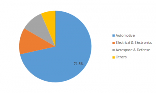 The Global Paint Protection Film Market has been segmented on the basis of Application which includes automotive, electrical & electronics, aerospace & defense, and others. Application-wise, the automotive segment accounted for the largest share of over 71% in 2016 and is projected to expand at a CAGR of 6.17% over the forecast period. The increasing use of Paint Protection Films in automobiles coupled with favorable government policies for automotive manufacturers in developing countries is the driving force behind the growth of this segment. The electrical & electronics segment is estimated to be the largest segment driven by rise in manufacturing of electronic gadgets such as mobile phones, laptops, and tablets.