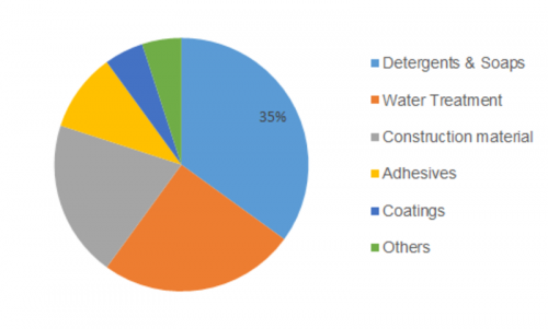 On the basis of the application, the global sodium silicate market is divided into detergents & soaps. Water treatment, adhesives, construction material, coating, and others.