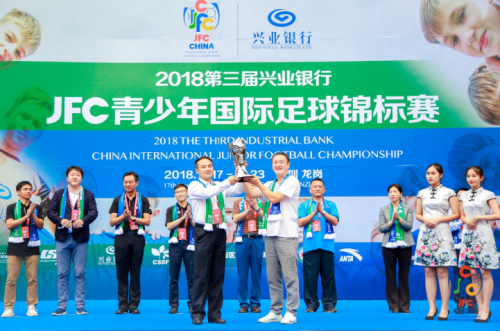 2018 The Third Industrial Bank China International Junior Football Championship, a large-scale youth public event, is guided and supported by National Youth Campus Football Work Leading Group Office, hosted by China Social Welfare Foundation Youth Football Fund and China Sports Futurity Investment, supported by China Sports School Federation and Culture, Sports, Tourism Bureau of Longgang, Shenzhen and exclusively sponsored by Industrial Bank. The event also got the great support of the official equipment sponsor of professional group Anta Sports, the official equipment sponsor of college group, Yinlang Football, and the only data service provider of the event, Tongdao Weiye.