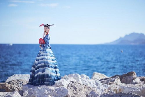 Wu Motong, a new generation actress, appeared on the red carpet for the 72nd anniversary of the Cannes Film Festival on May 15, wearing a wax-dyed light blue gradient dress to show off the red carpet, with a touch of girlhood in her fairy air and elegant and poetic dress layers; red headdresses, earrings and fans echoed with red lips, attracting extra eyes; the sleeve label of “mayor” on her arm earned eyeballs to carry the national customs to the end.